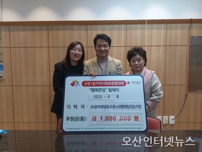 【오산인터넷뉴스】오산시 신장1동은 지난 24일 로뎀까페협동조합과 전통햇살협동조합이 신장1동 어려운 이웃을 위해 후원금 100만 원을 기탁했다고 밝혔다.