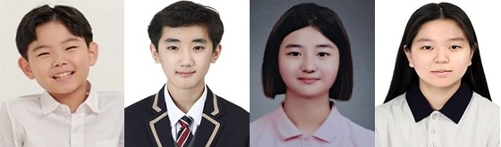 좌부터 iDREAM 석학(石鶴) 대상(大賞) 수상자= 정은기 용인삼가초등학교 4학년, 안준 푸른솔중학교 2학년, 김사랑 신서중학교 2학년, 이혜빈 나래중학교 3학년
