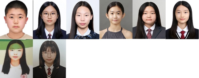 좌부터 중등부문 iDREAM 석학(石鶴) 은상 수상자= 신지웅 안동중학교 1학년, 김서율 대전여자중학교 1학년, 김나은 명덕여자중학교 1학년, 이나라 명덕여자중학교 2학년, 이예린 수원영동중학교 2학년, 정혜영 인천옥련중학교 3학년, 김윤성 풍천중학교 3학년, 정재서 매탄중학교 3학년
