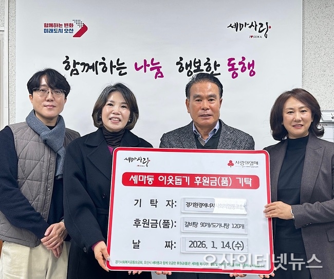 유미정 세마동장은 “어려운 시기에도 이웃을 위한 나눔을 실천해 주신 경기환경에너지사회적협동조합에 깊이 감사드린다”며 “세마동에서도 위기이웃이 소외되지 않도록 복지 사각지대 발굴과 지원에 최선을 다하겠다”고 전했다.