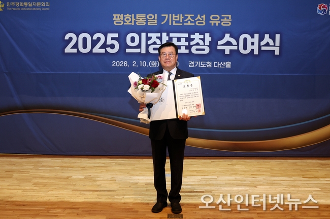 【오산인터넷뉴스】이상복 오산시의회 의장이 10일 경기도청 다산홀에서 ‘2025년 평화통일 기반 조성 유공 표창’을 받았다.