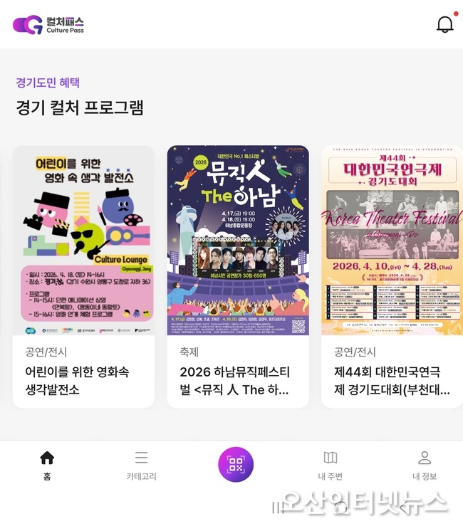 【오산인터넷뉴스】경기도가 도민의 일상 속 문화 향유를 돕는 ‘경기 컬처패스’ 앱을 전면 개편해 사용자 주변 9,300여 개 문화·관광 시설 정보와 현장 참여형 미션 혜택을 통합 제공한다고 16일 밝혔다.