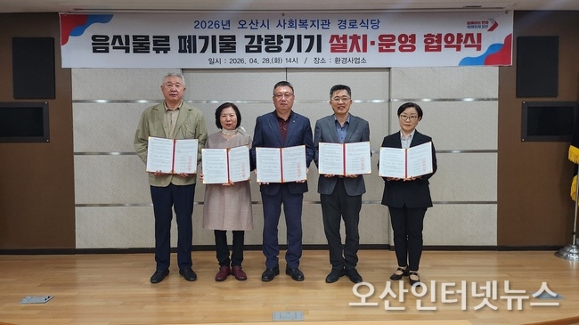 협약에 따라 오산시는 각 기관 경로식당에 음식물류 폐기물 감량기기 설치를 지원하고, 참여 기관은 감량기기의 효율적인 운영·관리와 음식물류 폐기물 감량 실천에 적극 협력하기로 했다.