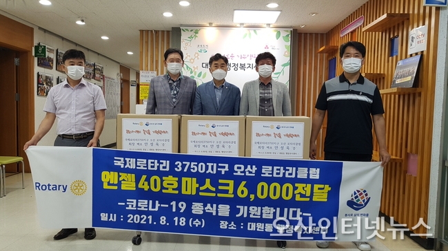 【오산인터넷뉴스】오산시 대원동은 오산로타리클럽(회장 안성욱)이 18일 관내 저소득층을 위해 마스크 6,000장을 기부했다고 전했다.
