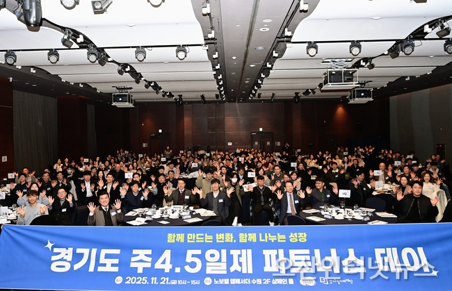 【오산인터넷뉴스】경기도는 21일 수원 노보텔 엠버서더 샴페인홀에서 ‘주4.5일제 참여기업 파트너스 데이’를 개최하고, 도내 참여기업과 함께 노동시간 단축 문화 확산을 위한 정책 방향과 운영 성과를 공유하는 시간을 가졌다.