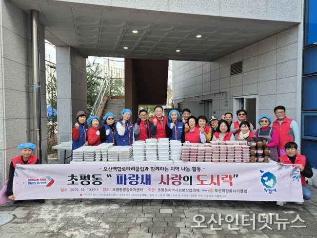 【오산인터넷뉴스】오산시 초평동 지역사회보장협의체(공공위원장 이기영, 민간위원장 유공수)는 지난 10일 오산백합 로타리클럽(회장 곽미정)과 협력해 추진한 ‘파랑새 사랑의 도시락’ 사업이 성공적으로 마무리되었다고 밝혔다.
