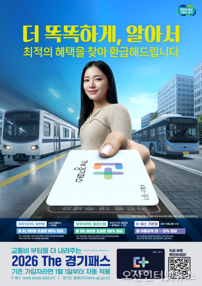 【오산인터넷뉴스】새해부터 전국 모든 대중교통수단의 교통비 일부를 환급하는 ‘The 경기패스’에 월 무제한 정액권 기능인 ‘모두의 카드’가 추가된다.