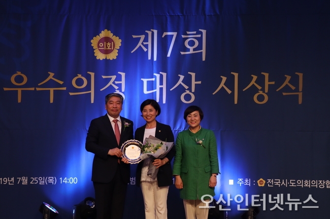 경기도의회 제2교육위원회 김미숙 의원(더불어민주당, 군포3)【오산인터넷뉴스】경기도의회 제2교육위원회 김미숙 의원이 지난 25일, 백범김구기념관에서 열린 제7회 우수의정대상 시상식에서 우수의정대상 수상의 영예를 안았다. 올해로 제7회째를 맞이한 전국시도의회의장협의회에서 주관하는 우수의정대상은 의정활동이 우수한 지방의원을 대상으로 수여하는 권위 있는 상이다.