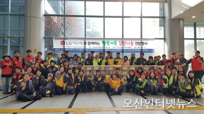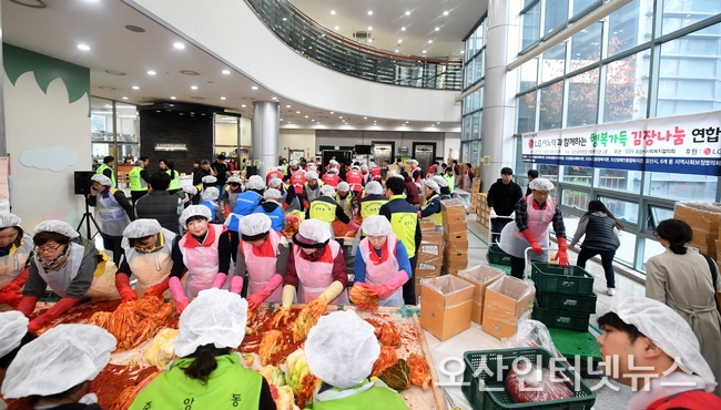 또 김종훈 오산시사회복지협의회 회장은 “올해 경기불황으로 김장후원이 줄고, 배추와 무값이 올라 김장행사가 힘들었다”며 “LG이노텍의 후원으로 기업과 민·관 기관들이 협력해 김장행사를 치러 더욱 의미가 깊다”고 감사의 말을 전했다.