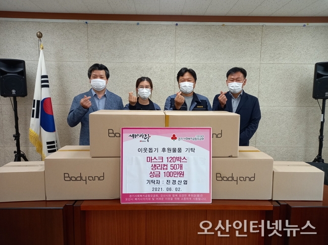 【오산인터넷뉴스】오산시 세마동은 지난 2일 ㈜진경산업(대표 조은경)에서 지역사회의 어려운 이웃을 위해 써 달라며 400만 원 상당의 마스크 120박스·생리컵 50개 및 성금 100만 원을 기부했다고 3일 전했다.