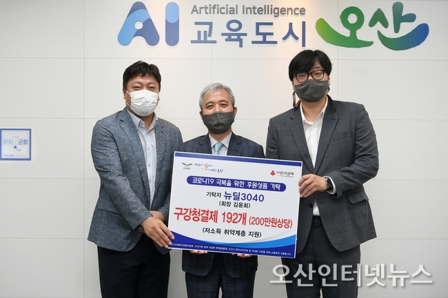 【오산인터넷뉴스】오산시는 뉴딜 3040(회장 김윤회)과 기독교대한감리회 샘물교회(담임목사 유지철)가 관내 취약계층 가구 지원을 위해 후원물품을 기탁했다고 2일 전했다.