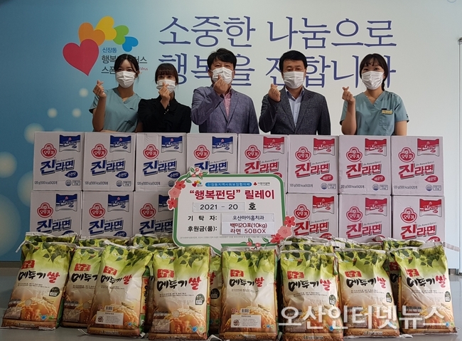 【오산인터넷뉴스】오산시 신장동 행정복지센터는 지난 9일 마이홈치과(대표 정의영)에서 다가올 추석 명절을 맞이하여 백미 20포, 라면 50박스 이웃돕기 후원물품을 기탁했다고 밝혔다.