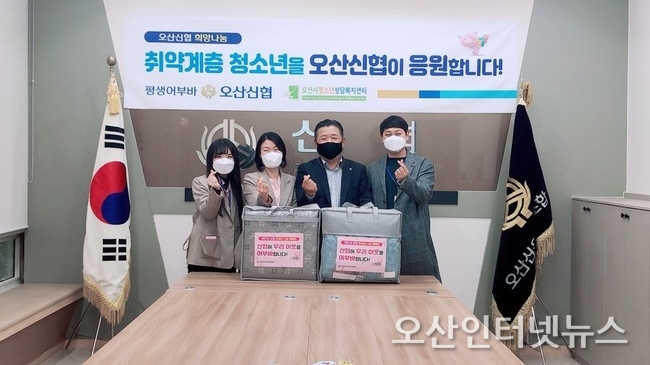 【오산인터넷뉴스】오산시는 지난 3일 오산신용협동조합(이사장 임완식)이 관내 조손가정, 경제적 빈곤 등 취약계층 청소년들을 지원하기 위해 오산시청소년상담복지센터에 이불, 전기매트, 재래김 선물세트 등 후원물품을 기탁했다고 4일 전했다.