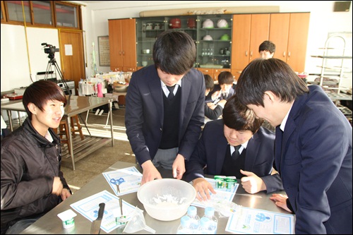 ▲ 실험을 하고 있는 학생들.