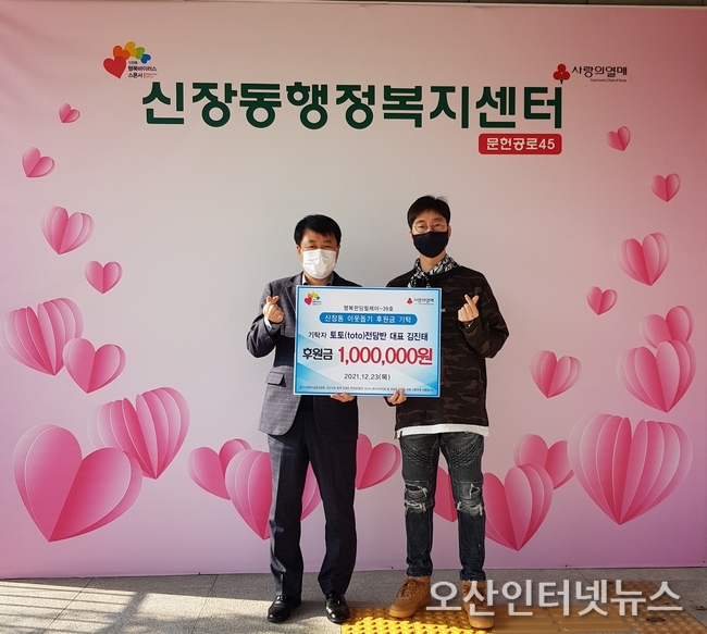 신장동행정복지센터는 지난 23일 토토(toto) 전담반 김진태 대표가 관내 저소득 취약계층의 코로나19 극복과 지역사회 복지발전을 위한 이웃돕기 후원금 100만원을 기탁했다고 밝혔다.