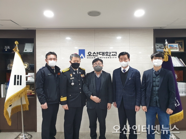 【오산인터넷신문】오산대학교는 2022년 01월 10일(월) 본관 2층 총장 직무 회의실에서 오산소방서와 간담회를 진행했다.