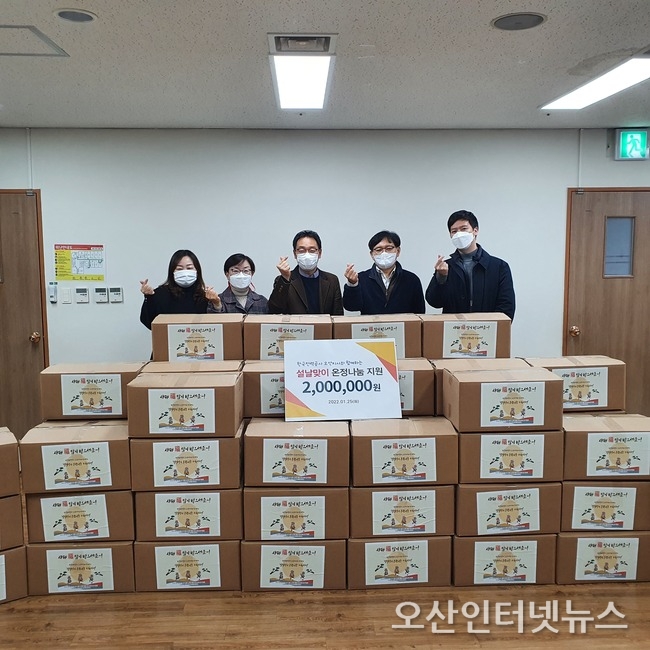 【오산인터넷뉴스】한국전력공사 오산지사(지사장 공병철)은 25일, 오산남부종합사회복지관(관장 권태연)에 설 먹거리로 구성된 ‘온정키트’ 40박스(200만원 상당)를 전달했다.