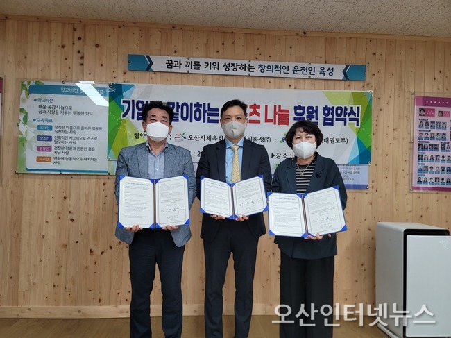 대원화성(주)에서 운천중학교의 학교 운동부 발전을 위해 향후 3년간 연 5백만원씩 후원하는 내용의 협약서에 최종 서명했으며, 오산시체육회는 본 사업에 대한 행정업무를 지원하기로 했다.