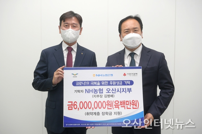 【오산인터넷뉴스】오산시는 지난 25일에 NH농협 오산시지부에서 지역 저소득 취약계층 장학금으로 600만원을 기탁했다고 밝혔다.