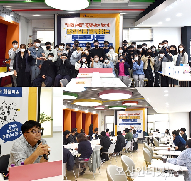 【오산인터넷】오산대학교가 지난 11월 24일 교내 종합정보관 도서관 채움북스에서 총장과 함께하는 토크콘서트를 진행했다.