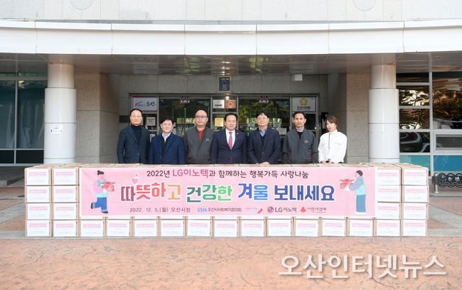 이에 이권재 오산시장은“매년 오산시민들을 위한 후원으로 지역사회 귀감이 되고 있는 LG이노텍 관계자분들께 감사드리고 LG이노텍의 선한 영향력 덕분에 우리 시가 더욱 온기와 희망이 가득한 지역으로 자리매김하는 것 같다”며 “전달해주신 소중한 나눔을 기반으로 오산시도 지역사회안전망 구축에 더욱 힘쓰겠다”고 화답했다.