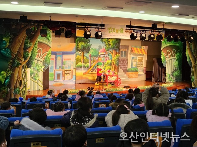 【오산인터넷뉴스】오산시어린이급식관리지원센터는 지난 5일부터 6일까지 이틀간 오산대학교 종합정보관에서 관내 어린이집 만 4~5세 어린이 500명을 대상으로 어린이 식생활 안전 뮤지컬 공연 ‘건강마을 구출 대작전!’을 실시했다.