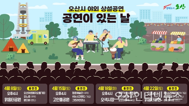 【오산인터넷뉴스】오산시는 봄 기운이 만연한 4월을 맞이해 야외 공연장에서‘공연이 있는 날’을 개최한다고 밝혔다.