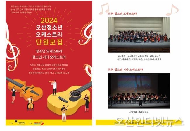 이번 신규단원 모집은 오산시 청소년(관내학교 재학생 및 거주 청소년)중 아동·청소년(초등 3학년 ~ 고등 3학년)을 대상으로 오케스트라 교육에 참여할 의지가 있는 아동.청소년을 선발한다. 우선선발계층이 우선선발되며 선발된 단원은 전문 강사를 통해 무료로 악기 연주법을 배울 수 있으며 악기도 무상 대여한다. 또한 캠프, 연주회 등 다양하고 폭넓은 문화예술 활동 경험의 기회가 주어진다.