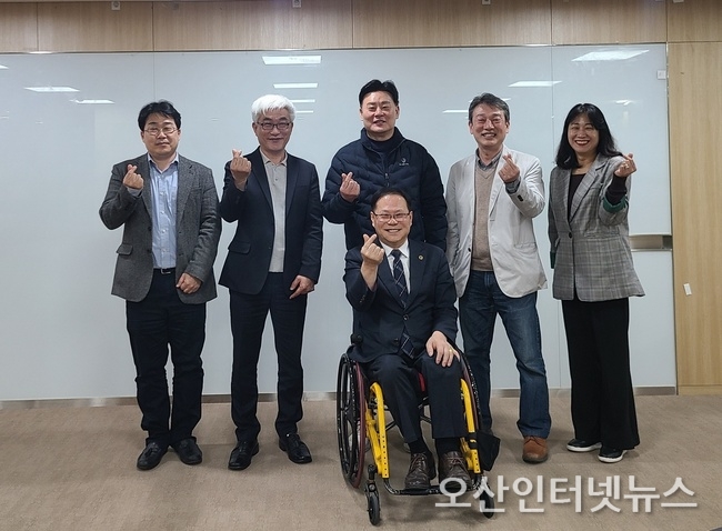 【오산인터넷뉴스】최종현 경기도의회 보건복지위원장(더불어민주당, 수원7)은 27일 경기도의회 중회의실에서 박재용 보건복지위원(더불어민주당, 비례), 한국장기요양기관지역협회연합 나윤채 회장, 송은옥 박사, 신승호 사무국장이 참석한 가운데 정담회를 열고, 경기도 장기요양기관 서비스 품질향상과 이용자들의 권리보장을 위한 경기도 장기요양기관 돌봄인증 조례 제정에 대해 논의했다.