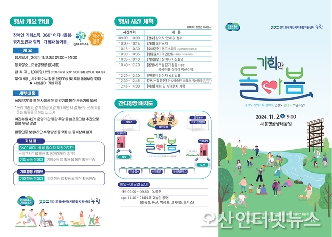 【오산인터넷뉴스】경기도가 오는 11월 2일 시흥 갯골생태공원에서 ‘경기도민과 함께 기회 돌봄(기회와 돌아봄)’ 행사를 개최한다.