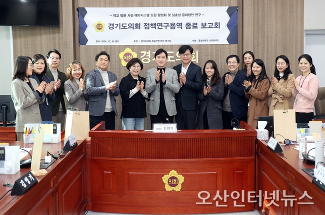 【오산인터넷뉴스】경기도의회 학교안전 혁신 연구회(회장 김영기 의원)는 24일 경기도의회 교육행정위원회 회의실에서 「학교 방문 사전 예약시스템 도입 활성화 및 실효성 증대방안」 정책연구용역 최종보고회를 개최했다.