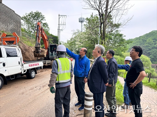 【오산인터넷뉴스】경기도의회 건설교통위원회 김동영 부위원장(더불어민주당, 남양주 오남)은 20일(화) 경기도 건설본부 북부도로과 관계 공무원과 함께 국지도 98호선과 오남읍 일대 지방도의 도로 사면 및 배수로 현장을 긴급 점검하고, 집중호우로 인한 교통사고 예방을 위해 철저한 도로 관리가 필요함을 강조하였다.