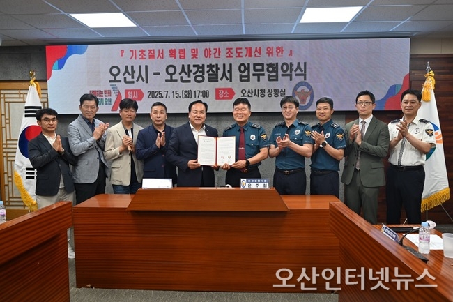 【오산인터넷뉴스】오산경찰서는 “지난 7월 15일, 오산시와 기초질서 확립 및 야간 조도개선을 위한 협약체결을 함으로써, 일상생활 주변 공동체의 신뢰를 저해하는 기초질서 미준수 관행을 개선하고, 안전한 밤거리를 조성하여 오산시민이 행복한 사회를 견인하겠다”고 밝혔다.