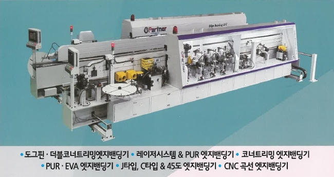 (주)파트너이앤지는 다양한 산업용 엣지밴딩기를 자체 기술로 설계·생산하고 있다. 주요 장비로는 도그핀· 더블코너트리밍엣지밴딩기, 레이저시스템&PUR 엣지밴딩기, 코너트리밍 엣지밴딩기, PUR· EVA 엣지밴딩기, J타입, C타입&45도 엣지밴딩기 등이 있다. 모든 장비는 내구성, 정밀도, 유지보수 편의성 등을 고려해 제작되어 현장에서 높은 평가를 받고 있다.