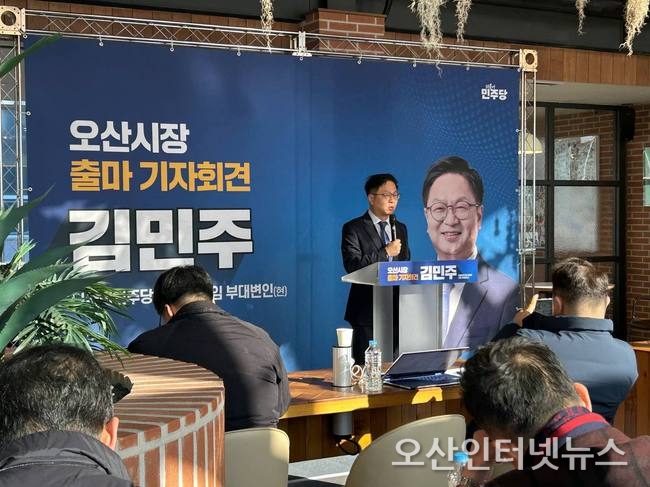 【오산인터넷뉴스】김민주 오산시장 출마자가 13일 오전 오산드빛에서 기자회견을 열고 오는 6월 3일 치러지는 제9회 전국동시지방선거 오산시장 출마를 공식 선언했다.