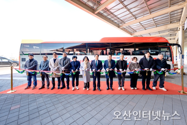 시는 30일 오후 오산역 환승센터에서 개통식을 개최하고 이같이 밝혔다. 이날 개통식은 이권재 오산시장, 이상복 오산시회의 의장, 최병현 오산교통 대표를 비롯해 시민 등 관계자 100여 명이 참석한 가운데 진행됐다.