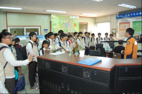 ▲ 청사견학 중 긴급구조상황실에 방문한 학생들